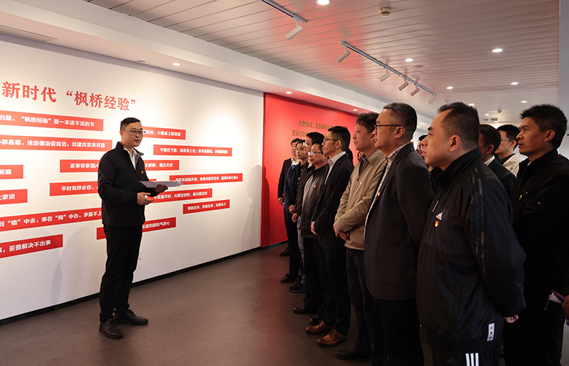 在楓橋經驗陳列館,大家沿著展覽路線,通過參觀照片、文件、實物等展品,了解“楓橋經驗”的發展歷程,學習楓橋干部群眾的經驗智慧,感受新時代“楓橋經驗”的實踐成果。